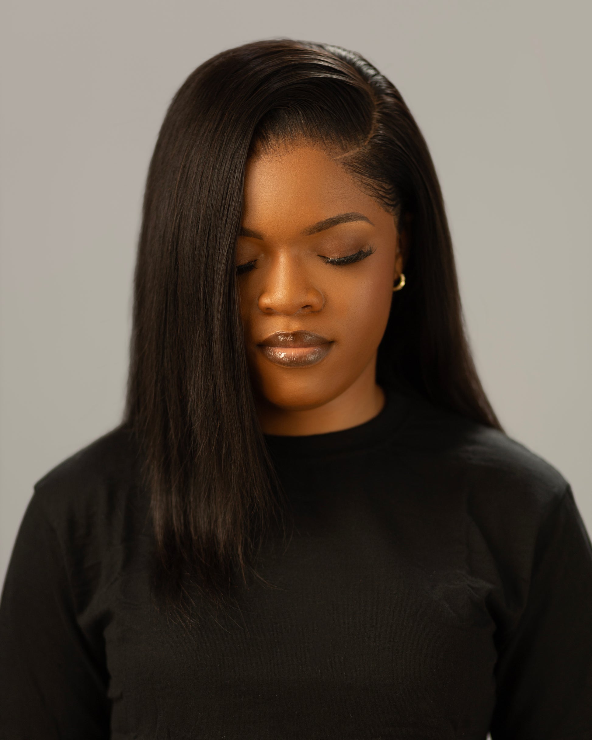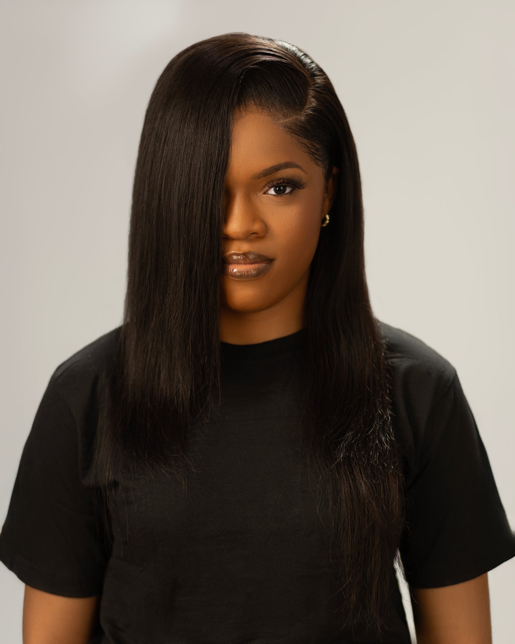 Sleek, polished straight hairstyle: elegant shine, smooth finish, perfect for sleek looks or going glam.